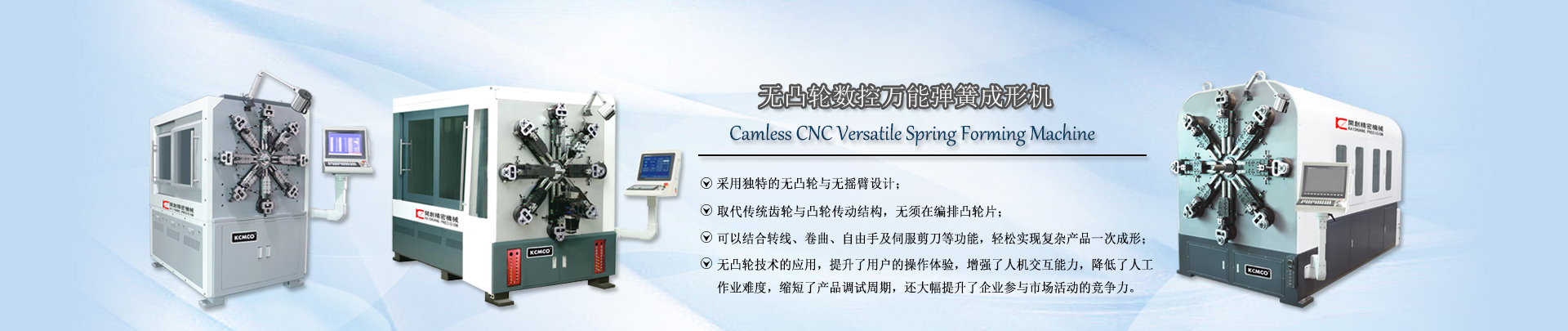 東莞市開創(chuàng)精密機(jī)械有限公司是目前國(guó)內(nèi)專業(yè)研發(fā)、生產(chǎn)和銷售為一體的彈簧機(jī)廠家,供應(yīng)φ0.15-20.0mm之間不同型號(hào)的電腦彈簧機(jī)設(shè)備,覆蓋了電腦壓簧機(jī)、數(shù)控萬能彈簧機(jī)和無凸輪彈簧機(jī)等數(shù)控彈簧機(jī)產(chǎn)品,還提供彈簧機(jī)價(jià)格和彈簧機(jī)視頻等信息。多年的發(fā)展,開創(chuàng)積淀了雄厚的技術(shù)實(shí)力和生產(chǎn)規(guī)模,掌握了彈簧機(jī)成形的核心前沿技術(shù),機(jī)型以“快、準(zhǔn)、穩(wěn)”特點(diǎn)著稱,得到了用戶的高度認(rèn)可與好評(píng),并遠(yuǎn)銷至世界多個(gè)國(guó)家及地區(qū)。